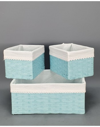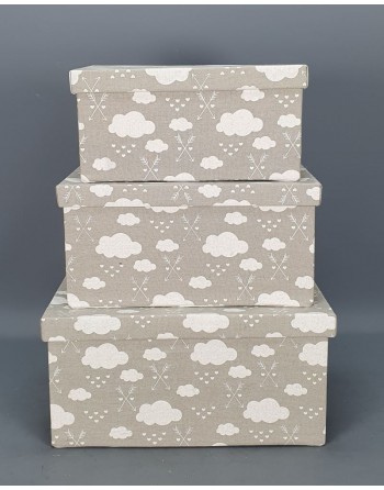 SET 3 CAJAS TELA NUBES GRIS Y CARTON. PRECIO TIENDA.