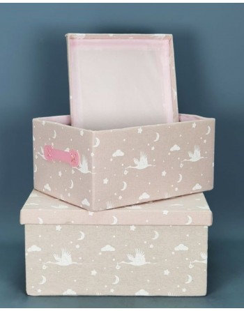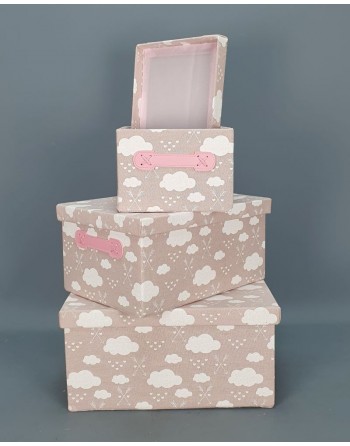 SET 3 CAJAS NUBES TELA ROSA Y CARTON. PRECIO TIENDA.