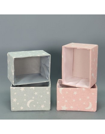 CANASTILLA TELA Y CARTON LUNA Y ESTRELLAS.