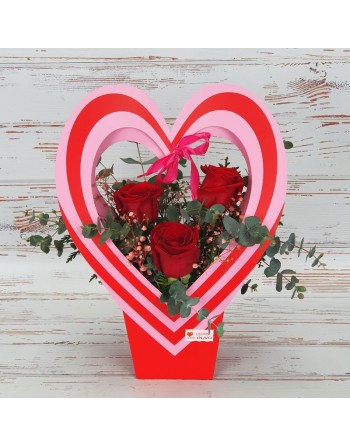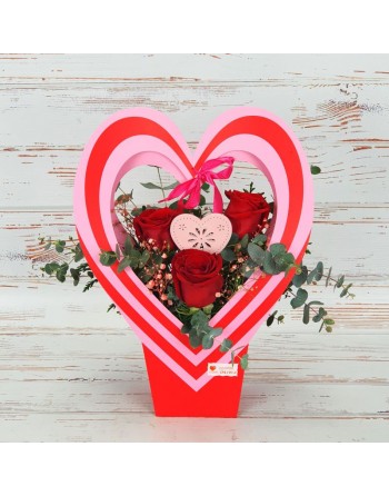CORAZON CON 3 ROSAS.