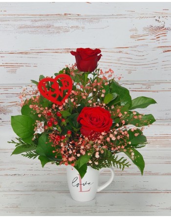 TAZA CON 2 ROSAS Y PIN. CONSULTAR COLORES DE LAS ROSAS.